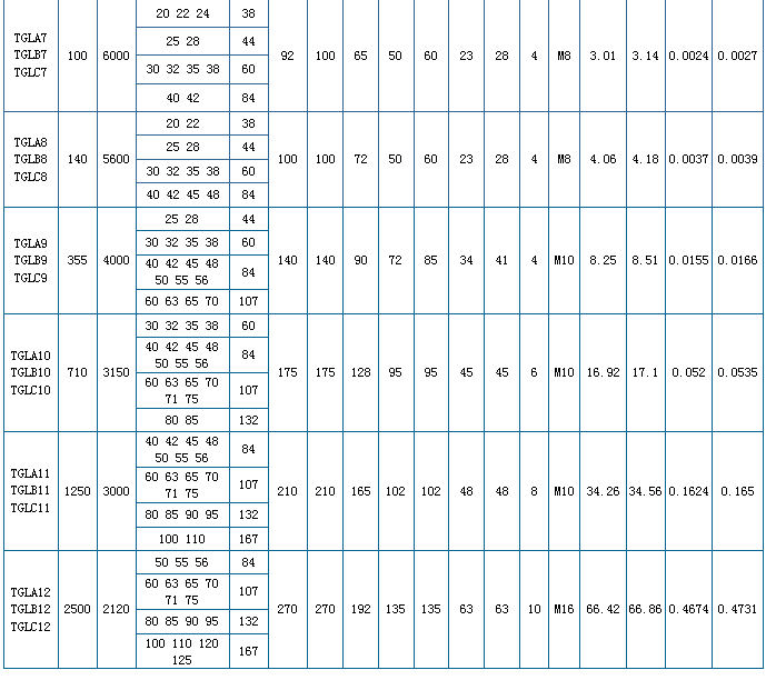 注:1、瞬時過載轉(zhuǎn)矩不得大于公稱轉(zhuǎn)矩的2倍。